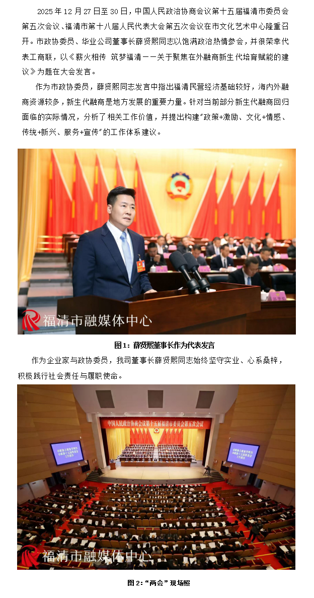 我司董事长薛贤熙同志出席福清“两会”并做大会发言